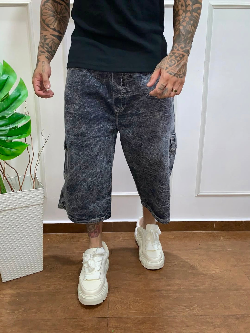 Bermuda Jeans Cinza Estonado – Corte Reto Premium